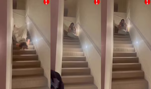 Jízda na polštáři po schodišti neproběhla úplně podle plánu...