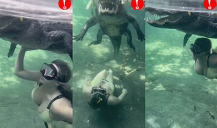 Žena se bez větších problémů potápí v blízkosti aligátora, na kterého se nebojí ani šáhnout!