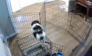 Pes, který je dost chytrý na to, aby se dostal přes velký kus ohrady.