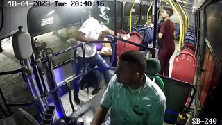18. duben 2023, Barranquilla, Atlántico, Kolumbie: Zloděj na motocyklu vnikl do autobusu, který zastavil na zastávce, aby okradl cestující. Jedna z cestujících počkala, až zloděje rozptýlí okolní cestující a svůj telefon schovala. Když se k ní zloděj přiblížil, podala mu starý levný telefon, který měla v kabelce. Druhá cestující mu odmítla dát svůj telefon a zloděj se už vůbec neobtěžoval okrást cestující sedící v zadní části autobusu. Zloděj tak odešel pouze se starým telefonem.