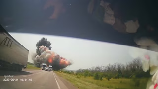 24. červen 2023, Voroněžská oblast, Rusko: Letecký útok na Wagnerovský konvoj, který se pohyboval po frekventované silnici.