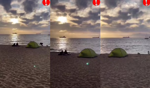 Pár si užívá krásný západ slunce ve svém stanu...