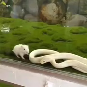 Had se snaží chytit procházející myš, ale mine a kousne se do ocasu.