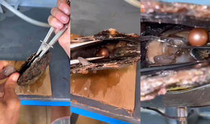 Získání vzácné růžové perly z ústřice.