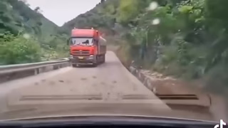Na úzké venkovské silnici čelí řidič kamionu, který se na něj řítí. Řidič automobilu s klidem zařadí zpátečku a s přehledem se vyhne srážce.