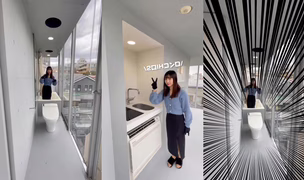 Velmi zvláštní byt v oblasti Hiroo v Tokiu v Japonsku. Byt je obklopen sklem a prostor je omezen pouze na úzkou chodbu. Nájemník zřejmě nebude mít žádný prostor a ani trochu soukromí. Nájemné činí 119 000 jenů (cca 18 500 Kč).