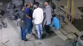 Pět mužů stojí před garáží, když náhled dojde k pádu do díry.