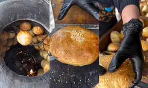 Prodejna KAZAKH SAMSA v Kazachstánu nám ukazuje, jak připravují svou Samsu, slané listové těsto plněné masem a zeleninou. Tradiční samsa se často peče v tandooru, což je speciální hliněná pec.