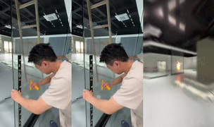 Společnost Reefilm je výrobcem flexibilních transparentních LED obrazovek. Zde jde vidět, jak se instalují na velké skleněné panely.