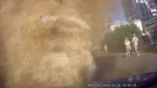 Prasklé vodovodní potrubí vytvořilo uprostřed silnice fontánu.