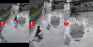 Rozběhnutý pes nedokáže na kluzkém povrchu včas zabrzdit.