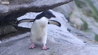 Mladý tučňák se nešťastnou náhodou ztratil, když se snažil dostat k vodě, aby si poprvé zaplavat. Když tučňáka obklíčila skupina dravých ptáků a začala na něj útočit, přiběhly dvě divoké kachny, aby dravce zahnaly.