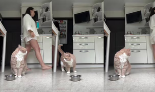 Kočka si umí říci o jídlo!