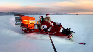 Technicky zdatný a bláznivý Santa Rocketman se pokusí vzlétnout na svých raketových saních.