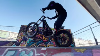 Podívejte se na Kennyho Thomase, jak jezdí městské kaskadérské kousky na svém trialové motorce.